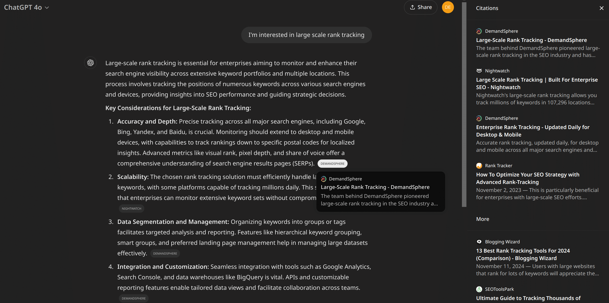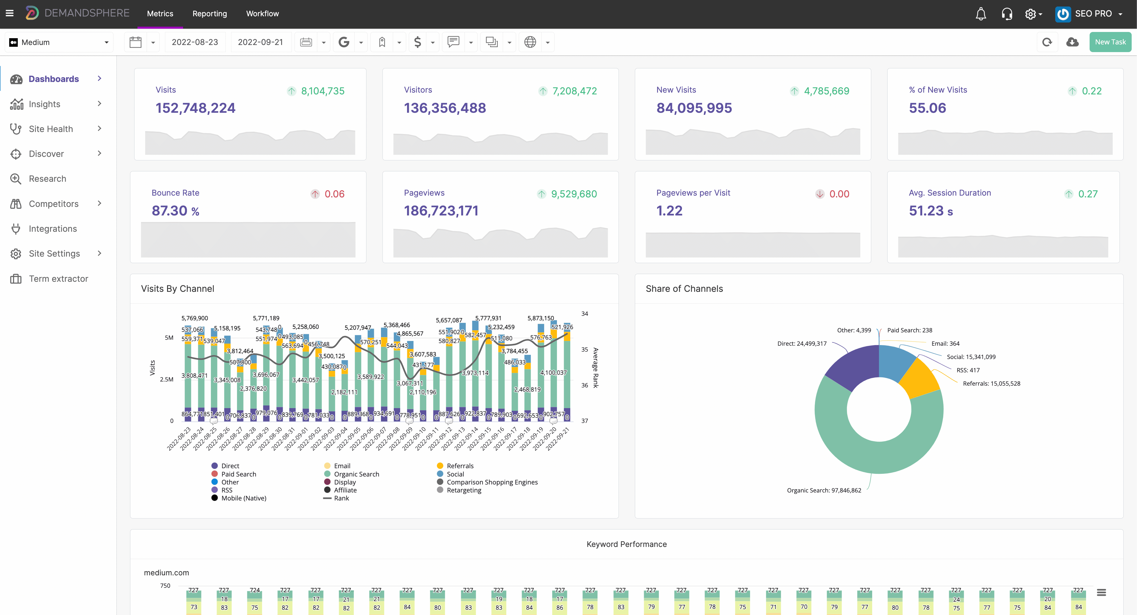 New features: AI Search Visibility monitoring covering ChatGPT, Perplexity, AI Overviews, and more