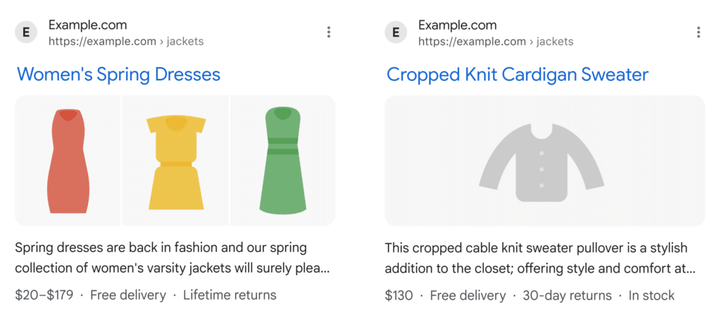 This second update is important for ecommerce sites who want to provide shipping and return information directly in the SERPs.