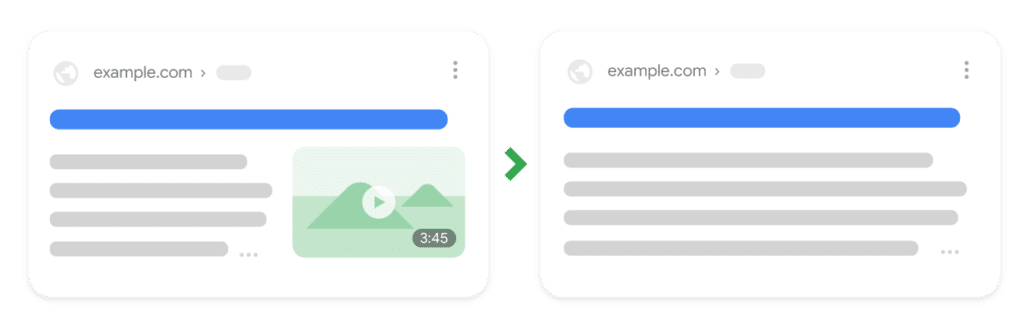 The gist of the update is that thumbnails will no longer be shown in SERPs if that video is not the main content of the page.