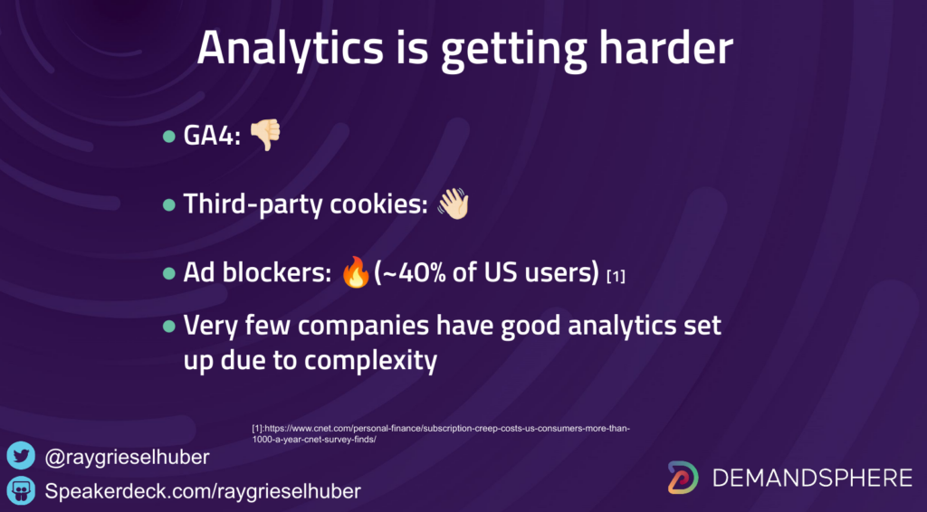There are many challenges today in measuring human attention because analytics itself is becoming much harder than it used to be. I can’t tell you the number of companies who are struggling with getting a good analytics setup internally.