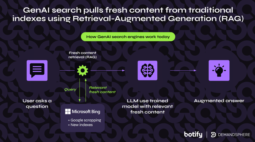 In a RAG system, you have two sources to pull from: 1) your foundational model (GPT-4o, for example) and 2) some external source, such as a database (vector or otherwise) or, in the case of search engines, as we will see, an organic search index and ranking system.
