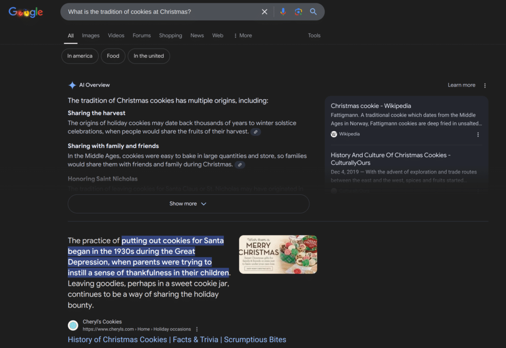 In May of 2024, they took what they had learned and launched AI Overviews to the public, no longer requiring a login to see them. (SGE still exists behind the login wall).